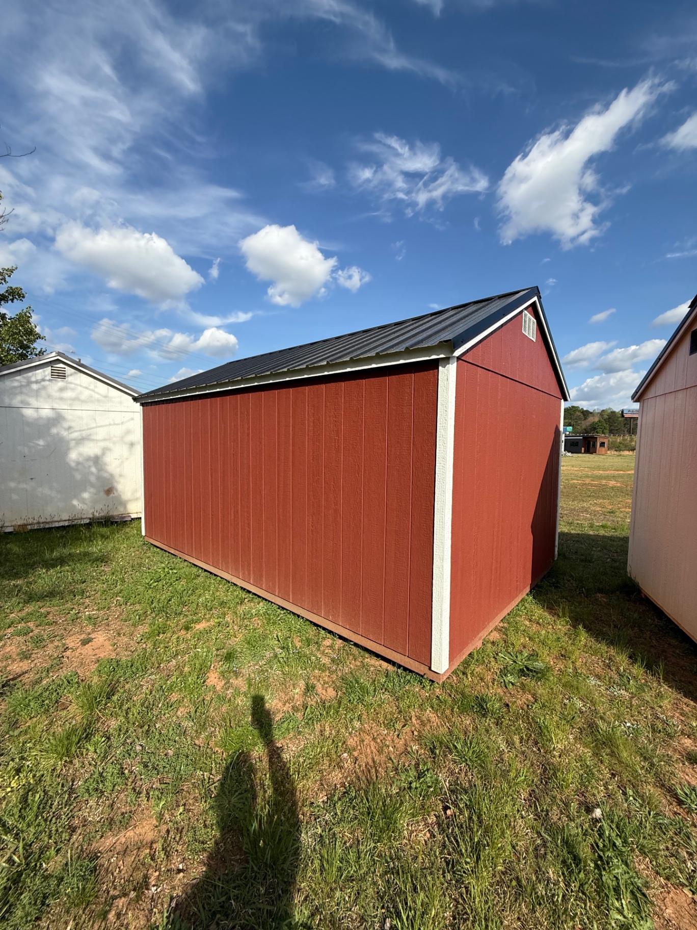 Score a massive deal on this 10×16 A-Frame Shed REPO near Charlotte, NC! This barn-red beauty with crisp white trim delivers 160 square feet of versatile storage space at a price you won’t find anywhere else. The classic A-Frame roof design maximizes headroom and sheds rain like a champ, while dual doors provide easy access for mowers, ATVs, tools, and seasonal gear. Peek inside and you’ll find a clean, open-stud interior with solid OSB walls and flooring — ready for shelving, a workbench, or whatever you need. Whether you’re decluttering the garage, setting up a backyard workshop, or just need serious storage on a budget, this pre-owned shed is inspected, priced to move, and available for immediate delivery in the Charlotte metro area. Rent-to-Own available with no credit check — low monthly payments make it easy to get started today!